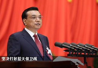李克强指出,坚决打好蓝天保卫战。今年二氧化硫、氮氧化物排放量要分别下降3%,重点地区细颗粒物(PM2.5)浓度明显下降。一要加快解决燃煤污染问题。全面实施散煤综合治理,推进北方地区冬季清洁取暖,完成以电代煤、以气代煤300万户以上,全部淘汰地级以上城市建成区燃煤小锅炉。加大燃煤电厂超低排放和节能改造力度,东中部地区要分别于今明两年完成,西部地区于2020年完成。抓紧解决机制和技术问题,优先保障可再生能源发电上网,有效缓解弃水、弃风、弃光状况。加快秸秆资源化利用。二要全面推进污染源治理。开展重点行业污染治理专项行动。对所有重点工业污染源,实行24小时在线监控。明确排放不达标企业最后达标时限,到期不达标的坚决依法关停。三要强化机动车尾气治理。基本淘汰黄标车,加快淘汰老旧机动车,对高排放机动车进行专项整治,鼓励使用清洁能源汽车。在重点区域加快推广使用国六标准燃油。四要有效应对重污染天气。加强对雾霾形成机理研究,提高应对的科学性和精准性。扩大重点区域联防联控范围,强化应急措施。五要严格环境执法和督查问责。对偷排、造假的,必须严厉打击;对执法不力、姑息纵容的,必须严肃追究;对空气质量恶化、应对不力的,必须严格问责。治理雾霾人人有责,贵在行动,成在坚持。全社会不懈努力,蓝天必定会一年比一年多起来。强化水、土壤污染防治。今年化学需氧量、氨氮排放量要分别下降2%。抓好重点流域区域水污染和农业面源污染防治。开展土壤污染详查,分类制定实施治理措施。加强城乡环境综合整治,普遍推行垃圾分类制度。培育壮大节能环保产业,使环境改善与经济发展实现双赢。推进生态保护和建设。抓紧划定并严守生态保护红线。启动森林质量提升、长江经济带重大生态修复、第二批山水林田湖生态保护工程试点,完成退耕还林还草1200万亩以上,积累更多生态财富,构筑可持续发展的绿色长城。